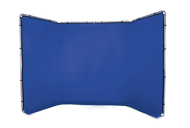 Manfrotto Panoramic Background 4m Chroma Key BlueLastolite By Manfrotto panorama bakgrunner på 4 meter er en av de bredeste frittstående tekstilbakgrunnene du får kjøpt i dag. I pakken får du tre aluminiumspaneler som står av seg selv og som kan formes til å pakke inn objektet du fotograferer. Tekstilbakgrunnen fester du til rammen med klyper. Bakgrunnene er tilgjengelig flere farger: Sort, Chromakey grønt (greenscreen), hvit, Granite og Limestone. Lastolite Bakgrunn Panorama er perfekt for fotografering av store grupper på location, bryllup, skoleball og event-fotografering. Bakgrunnen kan enkelt brettes ned i en medfølgende veske.