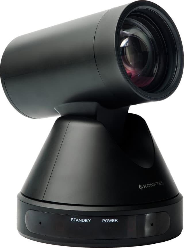 Konftel Cam50 gir imponerende bildekvalitet og presisjon til videokonferanser, selv når det er lite lys i rommet. Kameraet har 12x optisk zoom og er perfekt til mellomstore og store møterom.
