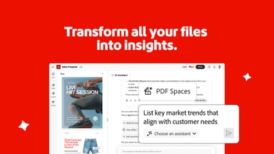 Meet the new Acrobat. Transform documents into powerful workspaces with PDF Spaces, specialized assistants, and easy content creation.