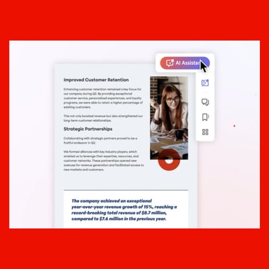 Save time with AI Assistant. Summarize your docs in a click, ask questions to get quick answers, and level up your productivity – all while knowing your content is secure.