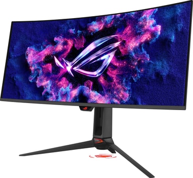 ASUS ROG Swift PG34WCDN 34'' QHD/OLED/360 Hz/0,03 ms skjerm tilbyr oppslukende spilling med 1800R-kurvatur, rask 360 Hz oppdatering, 0,03 ms respons, QD-OLED-klarhet, HDR10 og raske tilkoblingsmuligheter.Les mer om produktet