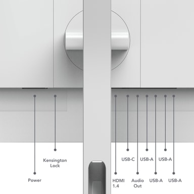 - HDMI 1.4, USB-C, USB-A-hub og lydutgang