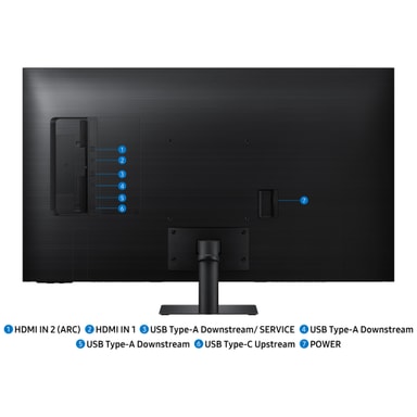 Oppgrader din visuelle opplevelse med Samsung Smart M7 43" skjerm og nyt de smarte funksjonene. Du kan justere vinkelen og høyden på skjermen for å få den perfekte posisjonen for øynene dine. Den har også mange tilkoblingsmuligheter, inkludert en HDMI 2.0-port, USB-C med Power Delivery og tre USB-A 2.0-porter for tilbehør.