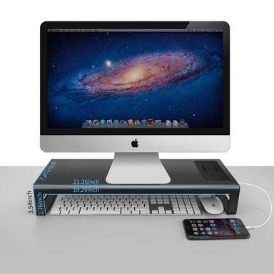 Hold skrivebordet ryddig og forbedre visningen med dette skjermstativet. Det har 4 USB 3.0-porter for tilbehør og en Qi‑kompatibel trådløs ladeplass til telefonen.Les mer om produktet