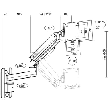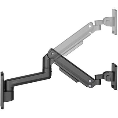Dette kraftige skjermveggfestet med gassfjærarm er perfekt for å spare plass på skrivebordet og øke arbeidskomforten. Innebygde gassfjærer for jevn bevegelse: laget av slitesterkt stål og aluminium for å støtte skjermer på opptil 49"".