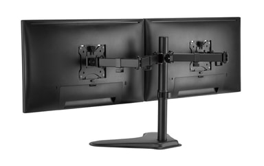 NÖRDIC bordfeste for doble skjermer passer til skjermene dine fra 17 tommer til 32 tommer i størrelse. Den er vippbar, roterbar og svingbar og begge dataarmene har doble ledd og er laget av høykvalitets stål. Den avtakbare VESA-platen er 360° roterbar for enkel installasjon og justerbar til den nøyaktige vinkelen du vil at skjermen skal ha. Kan også justeres fritt i høyden for din ergonomi. Skrivebordsfestet kommer også med kabelhåndteringstilbehør for å holde kablene organisert og ute av veien. Maksimal vekt per skjerm 8 kg, VESA-kompatibel med 75x75 og 100x100Spesifikasjoner: