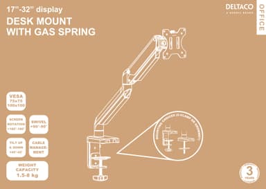 ARM-0350-serien har kortere armer beregnet på å fungere perfekt for små arbeidsområder. De fleste større fester kan ikke gi et nesten sømløst utseende med to skjermer på grunn av mindre plass og deres lengre armer. Med ARM-0350s korte armdesign kan du fortsatt bruke flere skjermer i flukt mot vegger eller i avlukker som har mindre plass på skrivebordet. Bordfestet er VESA-kompatibelt 75x75,100x100.