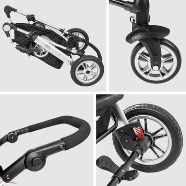 Denne flotte allsidige vognen er den ideelle følgesvennen for deg og barnet ditt. Som en multifunksjonell allrounder kan den brukes opp til 3 års alder. Enten som en klassisk barnevogn, sportsvogn eller bæresele - denne vognen er perfekt tilpasset dine behov. Til tross for sin slanke og smale design, er vognen stabil og trygg, selv når du handler, jogger eller går. I tillegg er vognen utstyrt med to store gummierte hjul og et 360° gummiert dobbelt svingbart hjul og kan flyttes meget mykt og stillegående. Det myke skyvehåndtaket kan tilpasses perfekt til din kroppsstørrelse og er snill mot ryggen. Enten det er et babysete med solbeskyttelse og trekk eller et sportssete, er denne vognen et skikkelig blikkfang for moderne foreldre.