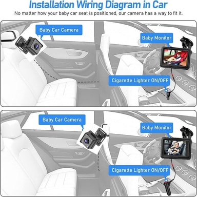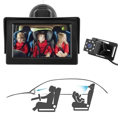 4,3-tommers HD 1080P babymonitor for bil, 360-graders rotasjon, vidvinkelkamera for nattsyn【Forbedret sikkerhet】Denne 4,3-tommers HD 1080P babymonitoren for bil med kamera reduserer behovet for at foreldre må snu hodet mens de kjører, noe som sikrerLes mer om produktet