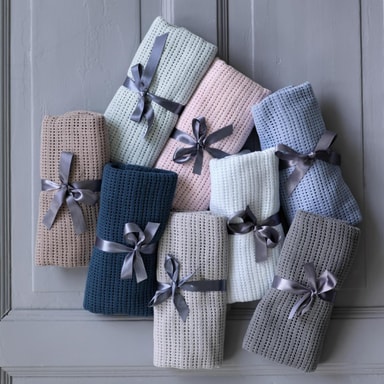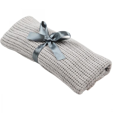Teppet, som har generøse mål, passer like godt i barnevognen som til kosestunder hjemme. Den myke bomullen er lun og behagelig mot babyens hud. Teppet er perfekt som gave, for eksempel til en babyshower, og leveres med en vakker sløyfe knyttet med et grått silkebånd.