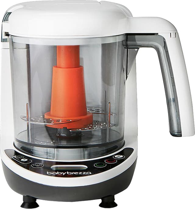 Baby Brezza One Step Deluxe matlagingsmaskin for babymat damper og mikser deilig mat til babyen din på under 10 minutter. Den fri for BPA og enkel å rengjøre siden bollen og bladene kan vaskes i oppvaskmaskinen.Les mer om produktet