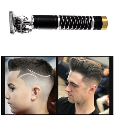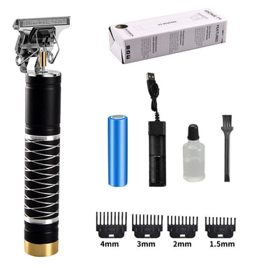 Denna elektriska hårklippare är gjord av högkvalitativ aluminiumlegering zinklegering, graverad med utsökt vitt spiralmönster. USB-laddning, lämplig för gravering, push white, gradient, trimning av hårstil.