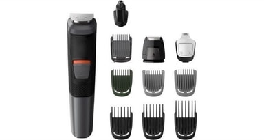 Vanntett alt-i-ett multigroomer med DualCut-teknik som gjør barberingen lettere. Philips Multigroom MG5730/15 lar deg lett skape den stilen du vil i ansikt og hår. Med mange tilbehør kan du endre stilen. Det følger blant annet med distaneskammer og en øre- og nesetrimmer som tar bort uønsket hårvekst. Bladene er selvslipende og behøver aldri å smøres.