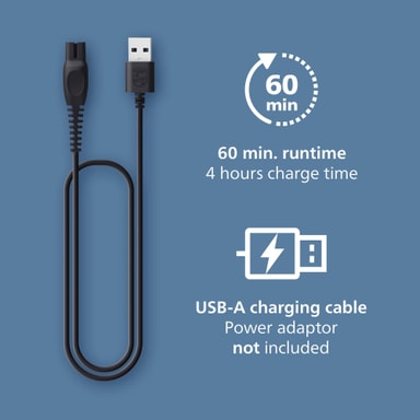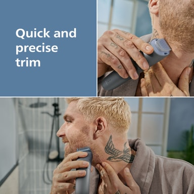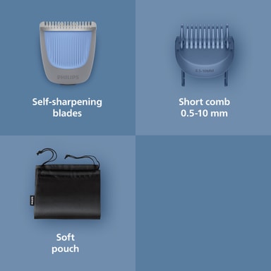 Philips 3000 Series skjeggtrimmer BT3619/15 leveres med selvslipende blader og 20 lengdeinnstillinger. Den kan brukes uten ledning i opptil 60 minutter, er helt vanntett og inkluderer en justerbar kam, USB-A-lader og rengjøringsbørste.Les mer om produktet