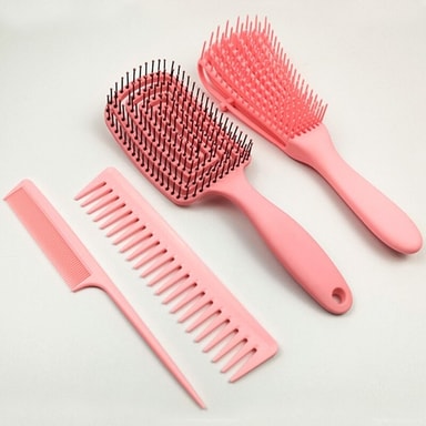 En perfekt sett for deg som er ute etter behagelige børster og kammer. De er laget av plast og hardheten på børsten kan justeres. Dette gjøres ved å flytte stripen på baksiden opp eller ned. På den måten kan du tilpasse børsten etter hvordan du selv ønsker den.