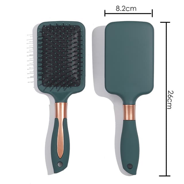 Allsidig design: Den firkantede skovlbørsten er utstyrt med polstret bust som masserer hodebunnen forsiktig. Den passer til ulike hårtyper og bidrar til å gjøre håret glatt og lett å style.