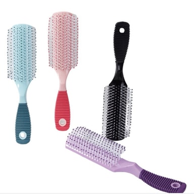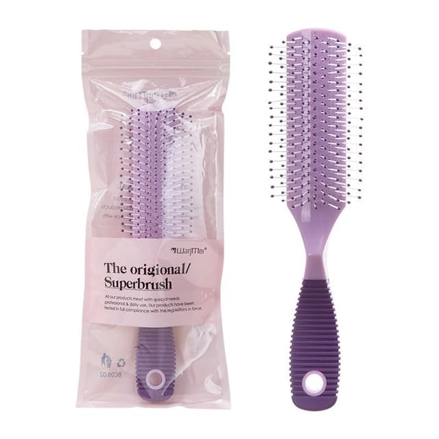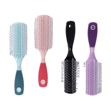 Uanstrengt flokeløsning og styling: Si farvel til smertefulle floker og knuter med vår flokeløsende vent børste. De bredt plasserte bustene glir uanstrengt gjennom håret ditt, og skiller hårstråene uten å dra eller forårsake brudd. Denne børsten er perfekt for å løse floker i vått eller tørt hår, noe som gjør den til et allsidig verktøy for din daglige hårpleierutine. Den er også flott for styling, slik at du enkelt kan skape glatte og polerte frisyrer. Vent designet gir optimal luftstrøm, reduserer tørketiden og forhindrer varmeskader. Enten du har tykt, tynt, krøllete eller rett hår, vil denne børsten gjøre at håret ditt føles mykt, glatt og håndterlig. Oppnå resultater av salongkvalitet hjemme med dette essensielle stylingverktøyet.