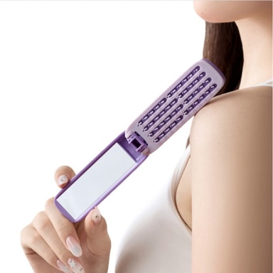 Selvrensende design: Den innovative selvrensende funksjonen til denne sammenleggbare kammen gjør den usedvanlig hygienisk og enkel å vedlikeholde. Med et enkelt trykk på en knapp trekkes busten tilbake, slik at du enkelt kan fjerne fanget hår og rusk. Dette sikrer at kammen din forblir ren og klar til bruk til enhver tid, og forhindrer opphopning av smuss og bakterier. Den selvrensende mekanismen forlenger levetiden til kammen og gir en mer sanitær pleieopplevelse, noe som gjør den til et overlegent valg fremfor tradisjonelle kammer. Nyt en ren og frisk kam hver gang du bruker den.