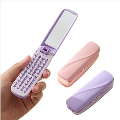 Speil og kam kombinasjon: Denne 2-i-1 rektangulære sammenleggbare speilkammen kombinerer funksjonaliteten til en kam og et speil i en enkelt, kompakt design. Det integrerte speilet gir mulighet for raske oppfriskninger og stiljusteringer mens du er på farten. Enten du sjekker sminken din, fikser håret eller bare sørger for at du ser best ut, gir denne kammen bekvemmeligheten av å ha begge pleieartiklene for hånden. Speilet av høy kvalitet gir en klar refleksjon, og kammens bust er skånsom mot hodebunnen, noe som gjør den til et allsidig og praktisk tilbehør for hverdagsbruk.