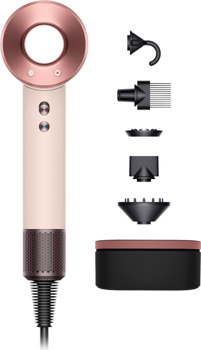 - Onyx rose gold-oppbevaringsetui: Beskytter og oppbevarer din Dyson Supersonic™-hårføner.