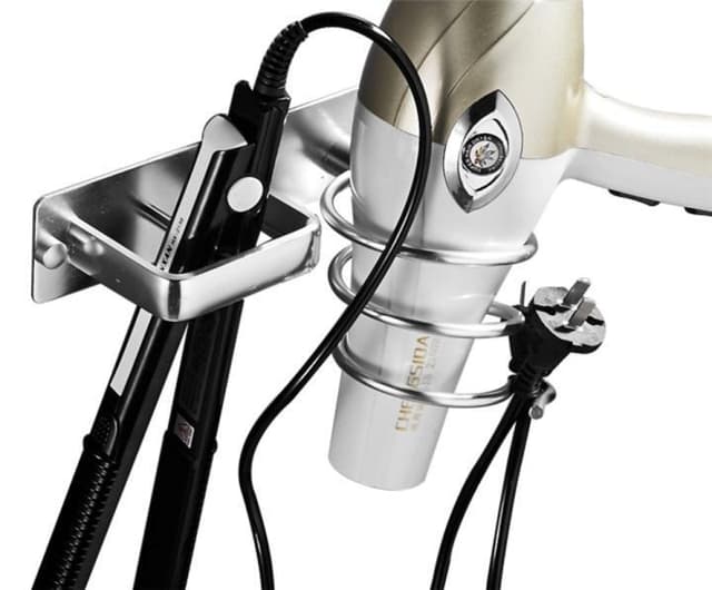 Smidig og stilig oppbevaring for hårføner og rettetang osv. Designet for å løfte utseendet på badet ditt. Det er en veggmontert henger med skruebeslag for enkel og praktisk installasjon.