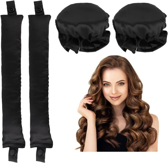 • 2-sett Satin Heatless Hair Curler for søvn om natten Sort