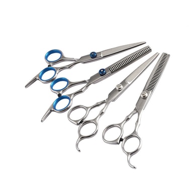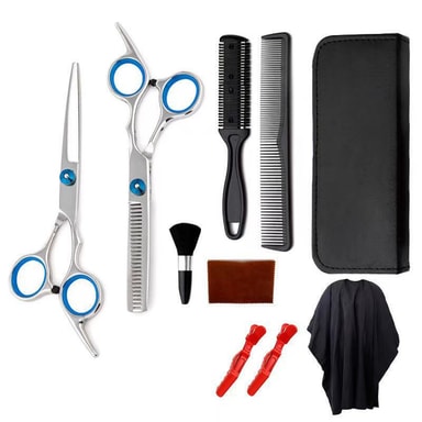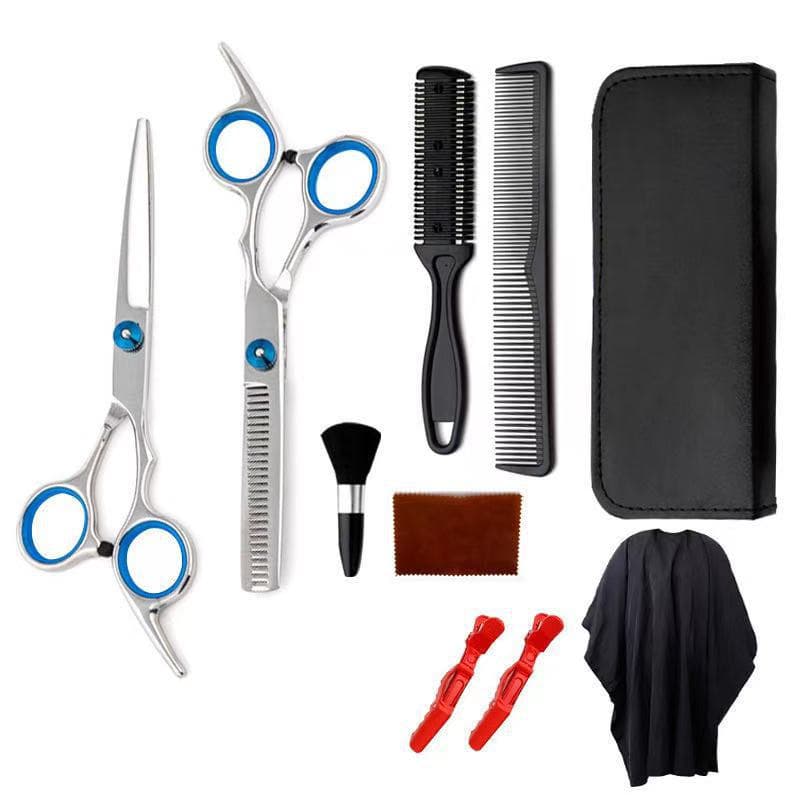 Dette settet inneholder 10 deler, inkludert en flat saks, en tannsaks osv. Den dekker alle dine behov innen klipping og styling, perfekt for de som ønsker å lage en unik frisyre hjemme. Saksen er laget av rustfritt stål.Les mer om produktet