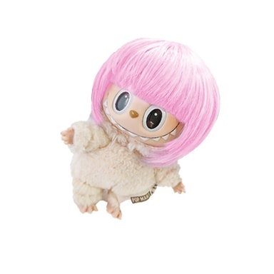 Kompatibelt med Labubu Bobo Hårparykk i Høytemperaturfiber, Søt Kort Bob Stil for Dukker og Figurer Rosa