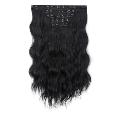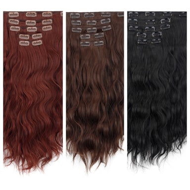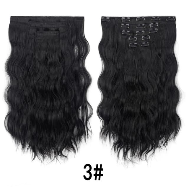 Umiddelbart volum og lengde: Oppnå en fantastisk forvandling med vår lange bølgete clip-in hårforlengelse. Legg umiddelbart til volum og lengde til ditt naturlige hår, og skap et glamorøst og voluminøst utseende på få minutter. Perfekt for spesielle anledninger, fotoshoots eller bare for å forbedre din hverdagsstil. Clip-in designet sikrer en sikker og komfortabel passform, slik at du trygt kan vise frem dine nye, frodige lokker. Laget av høykvalitets høytemperaturfiber, blander denne forlengelsen seg sømløst med ditt eget hår for en naturlig og umerkelig finish. Nyt allsidigheten ved å style håret ditt på forskjellige måter, fra elegante oppsett til flytende bølger, uten forpliktelsen til permanente forlengelser. Denne clip-in hårforlengelsen er en rask og enkel måte å heve utseendet ditt og øke selvtilliten på.