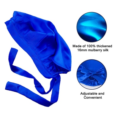 Søvnhette Justerbar silke Langt hår Ekte silke Blå