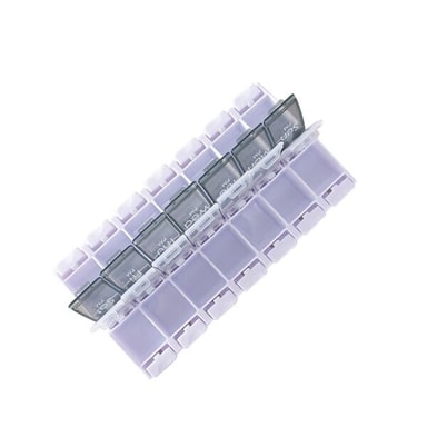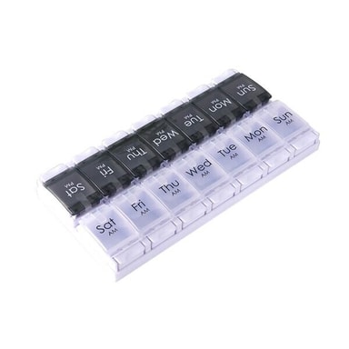 Hold oversikt over din daglige dosering av medisiner med denne pilleboksen. Denne boksen har 14 rom, to for hver ukedag hvor de lyse lokkene er til morgenen og de mørke til kvelden.