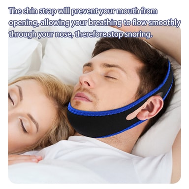 Hakestroppen forhindrer at haken faller under søvn slik at munnen åpner seg. Med lukket munn puster du jevnt gjennom nesen og slutter derfor å snorke. Snorkebåndet er laget av elastisk og mykt materiale og er veldig behagelig.Les mer om produktet