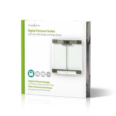 Enkel och väldigt tunn personvåg med känslig sensor för en snabb viktkontroll. Elegant design kombinerat med en platta av härdat glas och digital LCD-display. Med fotströmbrytare och automatisk avstängning.