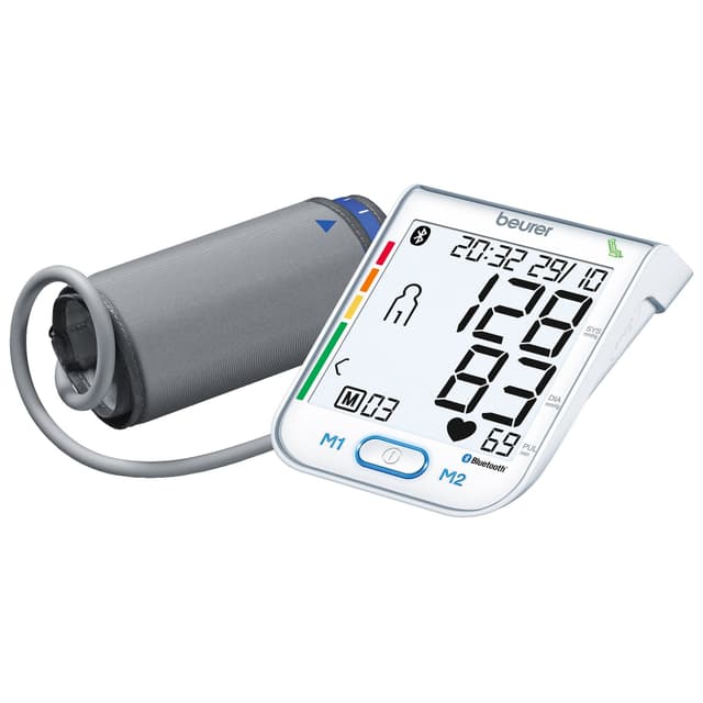 Mål blodtrykk og pulse regelmessig, hjemme på egenhånd med denne brukervennlige blodtrykksmåleren fra Beurer. Kan kobles til smarttelefonen via Bluetooth og app.Les mer om produktet