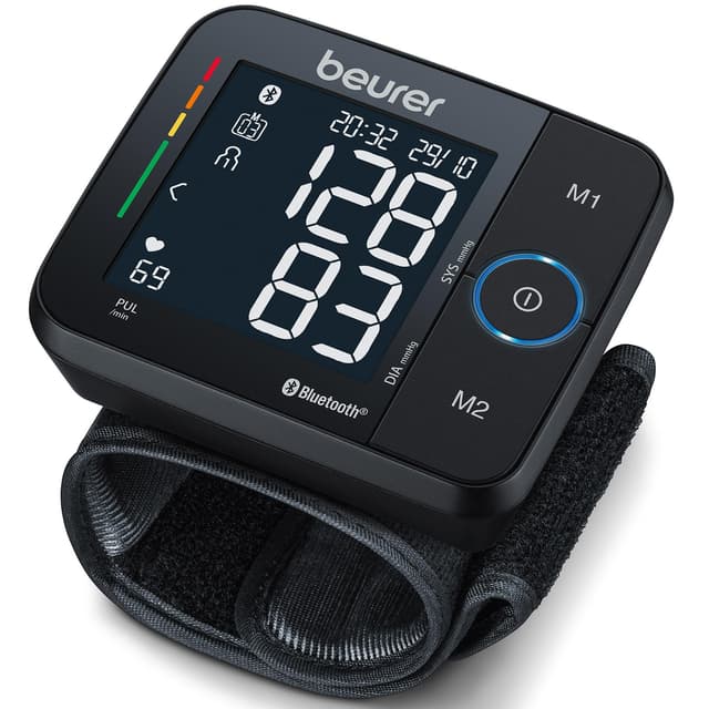 Oppdager arytmi: Advarer mot uregelmessig hjerterytme. Mansjett for håndledd med omkrets 13,5-21,5 cm. Viser dato / tid. Automatisk avstengning. Signal i tilfelle feilmelding. Batteriindikator.