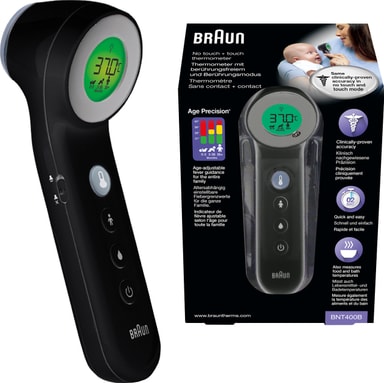 Med dette termometeret fra Braun kan du gjøre det å ta temperaturen til barna dine så komfortabelt som mulig. Det kan måle temperatur både med og uten berøring, og gir nøyaktige resultater i begge moduser. Det har også Age Presicion-funksjon.Les mer om produktet