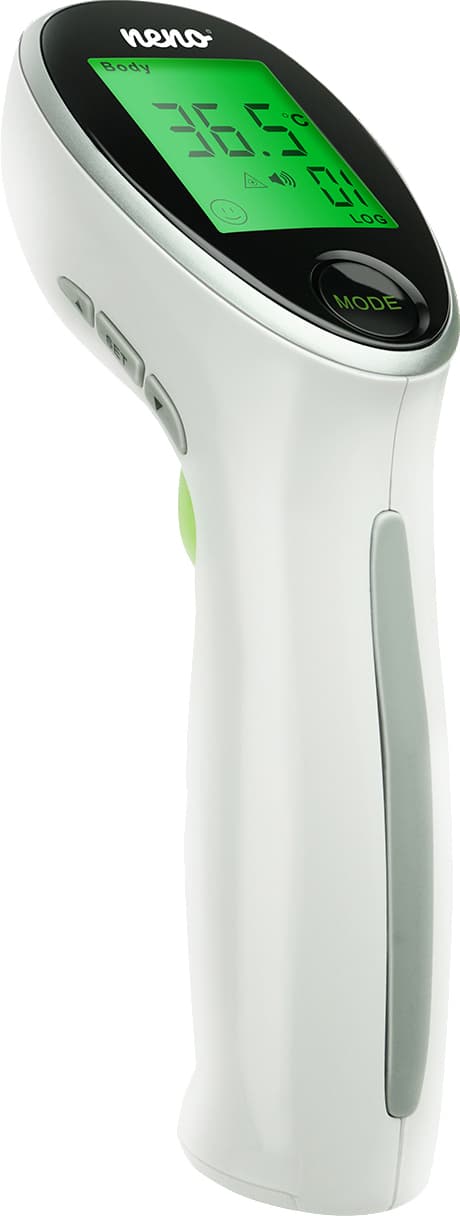 Med multifunksjonelle Neno Medic T05 infrarødt termometer kan du måle kroppstemperaturen til familiemedlemmer eller temperaturen til alle typer gjenstander eller væsker. Termometeret benytter infrarød teknologi, kan lagre opptil 34 målinger og er utstyrt med en stor digital skjerm for fargekodede resultater.