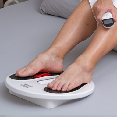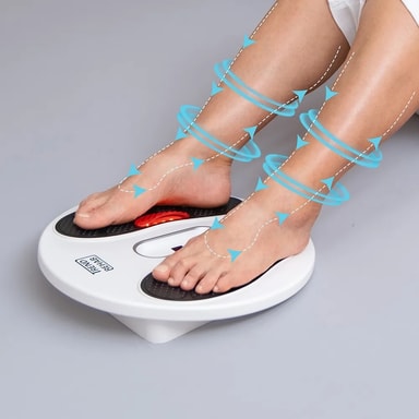 La blodsirkulasjonen komme i gang! Sirkulasjonstrimmer 121-CT stimulerer føtter og ben med elektriske impulser og IR-lys, slik at musklene trekker seg sammen og blodsirkulasjonen øker – helt mens du slapper av. Den kan lindre kalde føtter, nummenhet, rastløse ben, hevelse, smerter, kramper, åreknuter, blodpropper, hælspore samt slitne og tunge ben. Med 20 intensitetsnivåer får du en behandling som passer deg. Inkludert er også TENS-plater for nakke, skuldre og andre områder. En effektiv og behagelig måte å vekke føtter og ben til liv på – uten anstrengende trening.