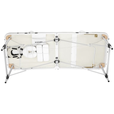 For enda mer komfort er det inkludert 15 engangs neseservietter som enkelt kan legges på hodestøtten. En liten sidelomme gir plass til tilbehør, slik at massasjeolje, kluter eller andre gjenstander alltid er lett tilgjengelige.