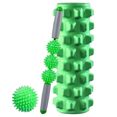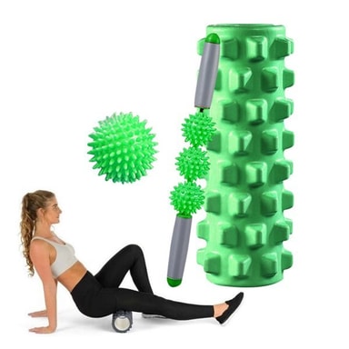 Det ultimate massasjesettet for massasje og yogaøvelser. Disse massasje- og treningsverktøyene bidrar til å øke blodsirkulasjonen, lindre muskelsmerter og fremme muskeloppbygging. Takket være den stikkende overflaten får du en dypere massasje og får lettere tilgang til muskelknuter. Bruk rullen før treningen for å varme opp musklene og etter treningen for å øke blodsirkulasjonen og dermed lette gjenhentingen.