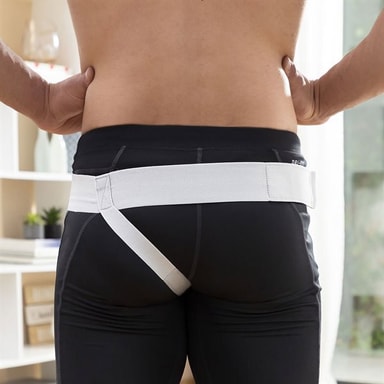 Den medfølgende puten kan festes med borrelås akkurat der det er behov for den, noe som gir en skreddersydd opplevelse med maksimal komfort. Beltet er justerbart og laget av elastiske materialer som sitter godt uten å gnage eller legge unødig press.