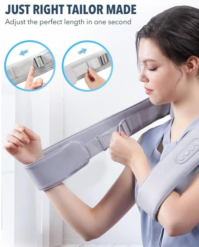 Andre funksjoner: Denne massasjeapparatet er designet med ergonomisk ""U"" -form for å vikle rundt halsen/skulderområdet som en betryggende kos, og gir optimal komfort for stressavlastning og sjelefred 2 massasjehoder med fire noder roterer toveis med 3 hastighetsnivåer for å gjenskape massasjeopplevelse personlig 2-trinns FocalHeat-teknologi fokuserer på anvendte områder, noe som ytterligere lindrer muskelsår og tretthet Armstroppene er justerbare, og tar hensyn til mangfoldet i menneskelig fysikk for å skape en passform som er ""akkurat"" Sikrer lik komfort for familie og venner