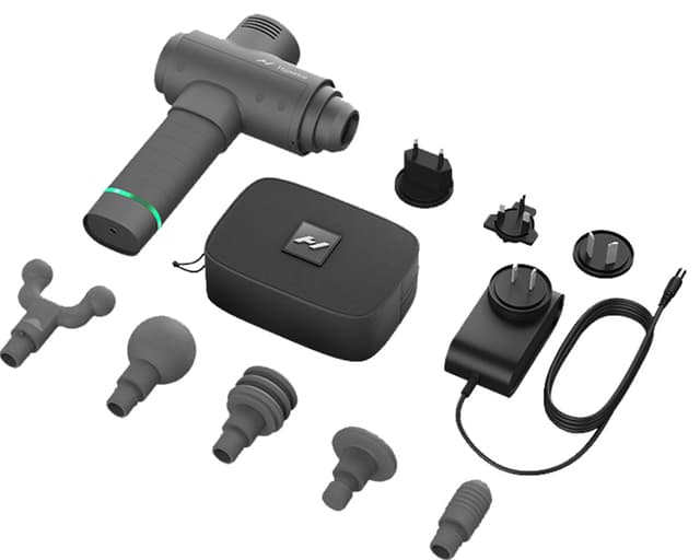 Det standardiserte massasjehodet kan skiftes med en av de fire massasjehodene som kommer i tillegg. Tilbehøret inkluderer massasjehoder med ulike former som kulehode, ribbehode, ballhode og flathode for å målrettet ta seg av spesifikke muskelgrupper. Ballhodet har større overflateområde som er ideell for førstegangsmassasje, flathodet fungerer best på tette muskelgrupper, kulehodet kan brukes for å komme frem til spesifikke områder eller trykkpunkter og ribbehodet jobber best med spesifikke muskelgrupper uten å trigge direkte musklene.