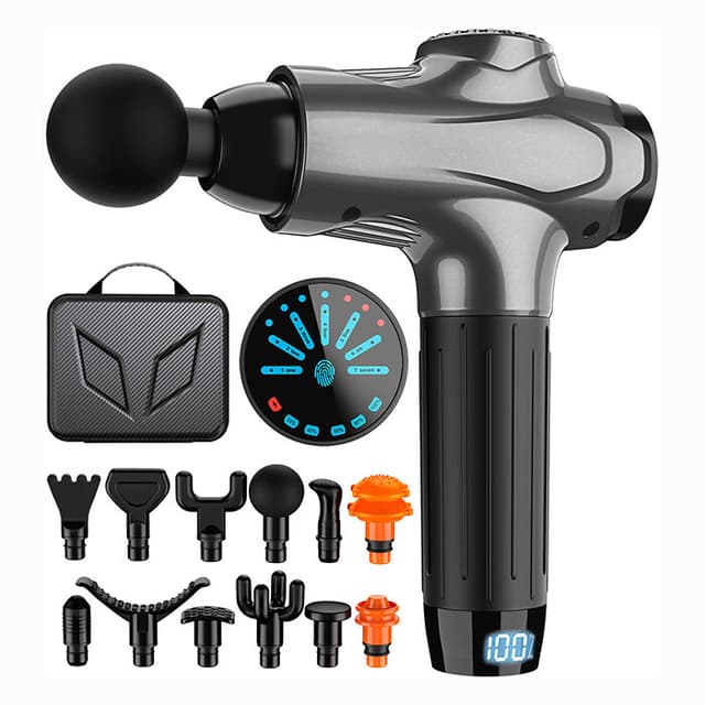 Massasjepistolen kan effektivt massere muskelen din, lindre sårhet, stivhet i daglig trening og daglig husarbeid, fremme blodsirkulasjonen. 7 hastighetsnivåer og 12 massasjehoder kan justeres for å møte dine behov.