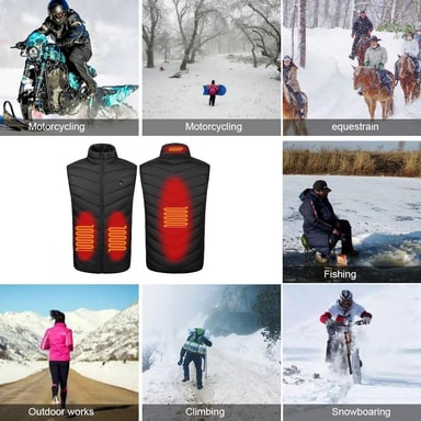 Varmer overkroppen: En oppvarmet vest som er myk og pustende og som varmer kroppen og nakken ekstra varme når det er kaldt. Perfekt for utendørsaktiviteter som camping, jakt, fiske, ski, fotturer eller sitte på tribunen i den kalde årstiden. Kan brukes som ytterplagg eller som et behagelig varmt underplagg.