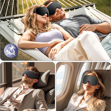Opplev totalt mørke med vår 3D Konturert Svart Sovemaske. Laget med memory foam og en justerbar stropp, blokkerer den lys for avslappende søvn. Perfekt for reise og avslapning, og sikrer en komfortabel passform for alle hodestørrelser.