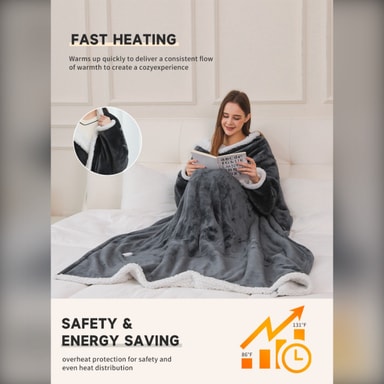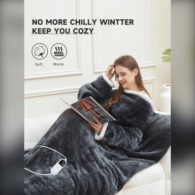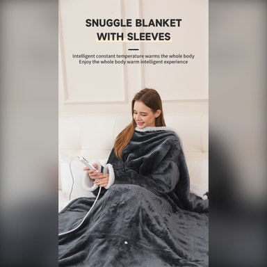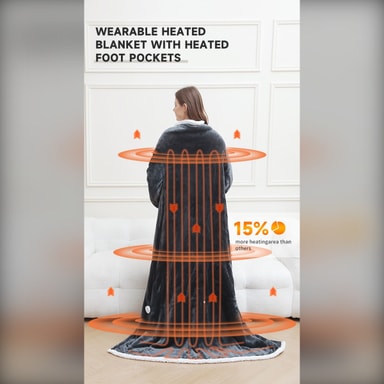 Full Body Warmth: Opplev full kroppsvarme med denne bærbare smarte elektriske varmeteppet. Designet med ermer og en varm fotlomme, gir dette teppet en omsluttende varme som er perfekt for kalde kvelder. Nyt komforten og varmen mens du slapper av hjemme, ser på TV eller jobber. Den innovative designen sikrer at du holder deg varm fra topp til tå, og gir en avslappende og behagelig opplevelse. Dette teppet er ideelt for alle som ønsker å holde seg varme og komfortable gjennom hele vinteren, og gir en luksuriøs følelse av velvære.