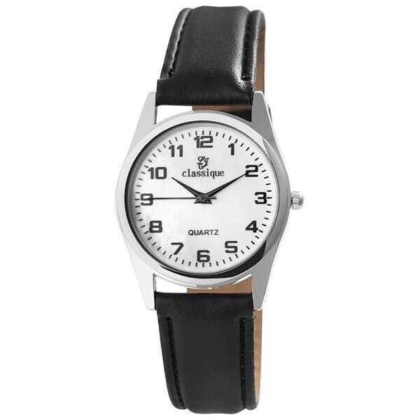 Classique herreklokke med kunstskinnarmbånd - Sort reim / Hvitt Ur