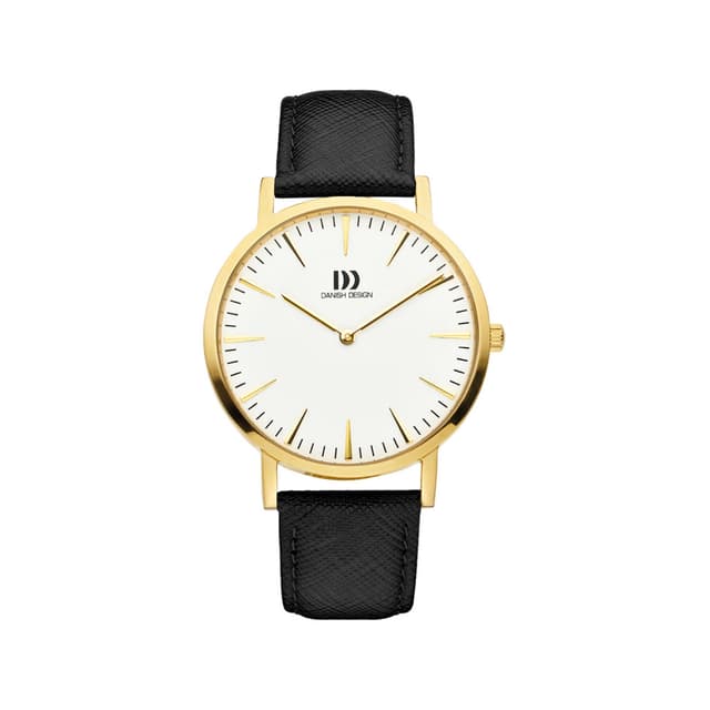 En klassisk klokke fra danish design som har et 40mm rustfritt stål kasse med hvit urtavle, mineral krystallglass og svart lærrem. Dette danish designuret er en perfekt match feller ethvert antrekk og enhver anledning.