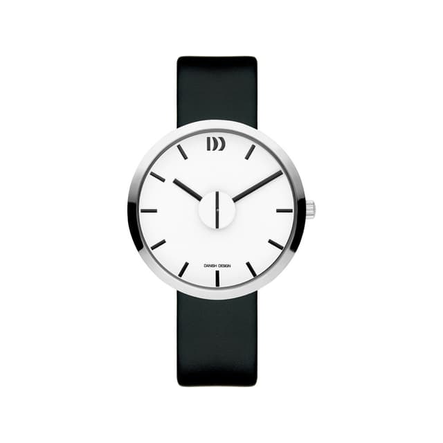Simple og klassisk på en perfekt måte som gjør at denne klokken passer til ethvert antrekk.the dansih design uret har rustfri stålkasse med hvit urtavle, mineral krystall glass og en svart lær rem.